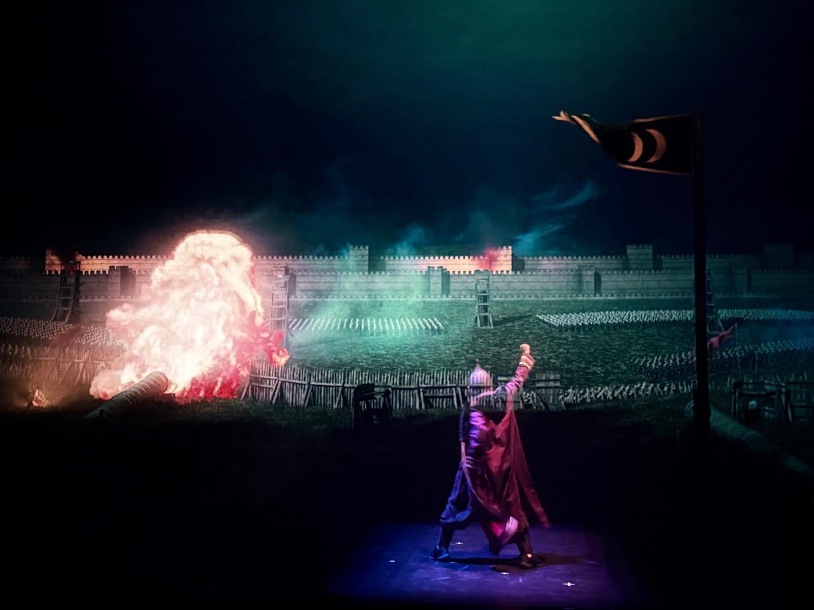 Bu gösteride sahneler, dijital sanatla can buluyor! İstanbul’un tarihi yapıları, mitolojik kahramanları ve zafer dolu anları, büyüleyici görsellerle hayat buluyor. Her bir sahne, özel ışıklandırmalar ve dijital animasyonlarla zenginleştirilmiş, izleyiciyi derin bir hikâyenin içine çekecek.